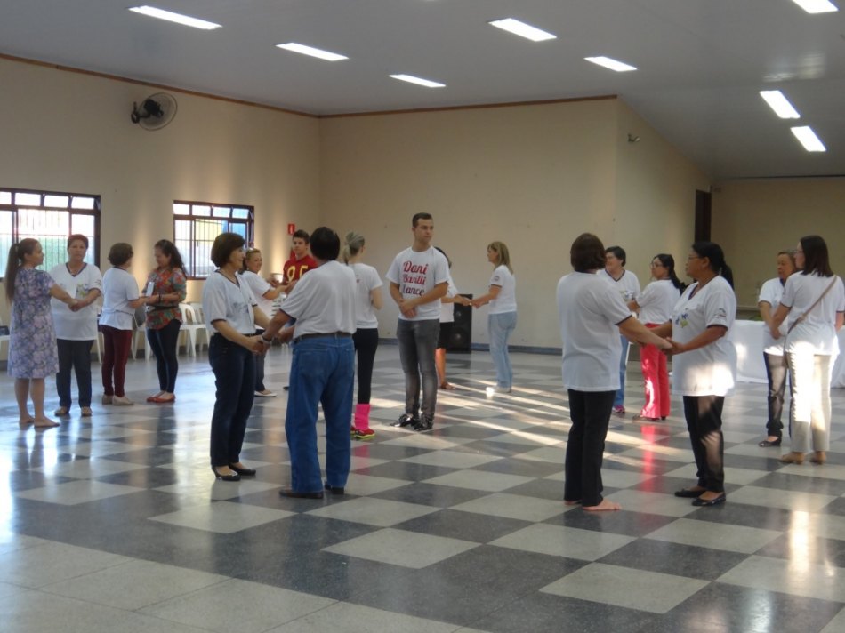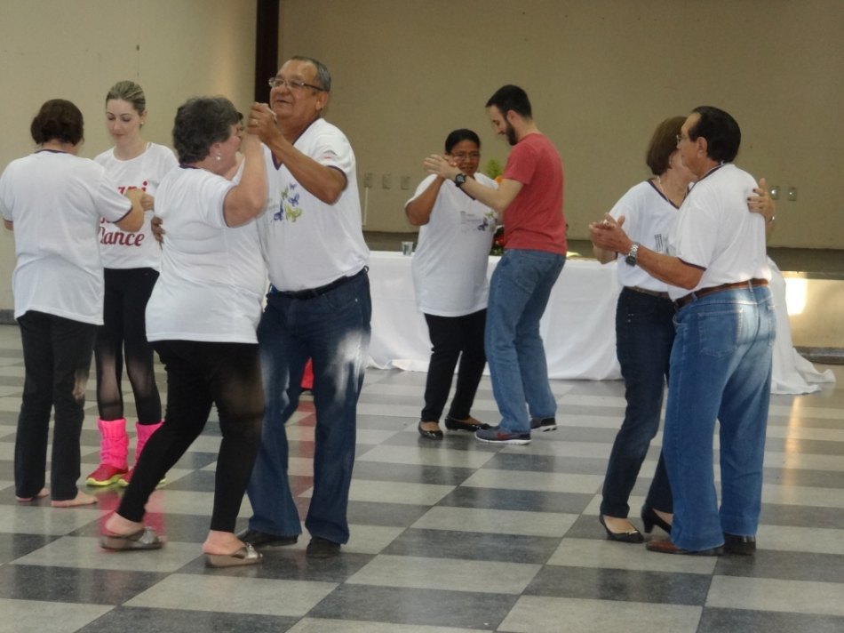 Depois do café da tarde, os participantes puderam participar de uma aula de dança em grupo com Dani Barilli. A atividade proporcionou aos aposentados uma dinâmica divertida e a possibilidade de interagirem com os colegas.