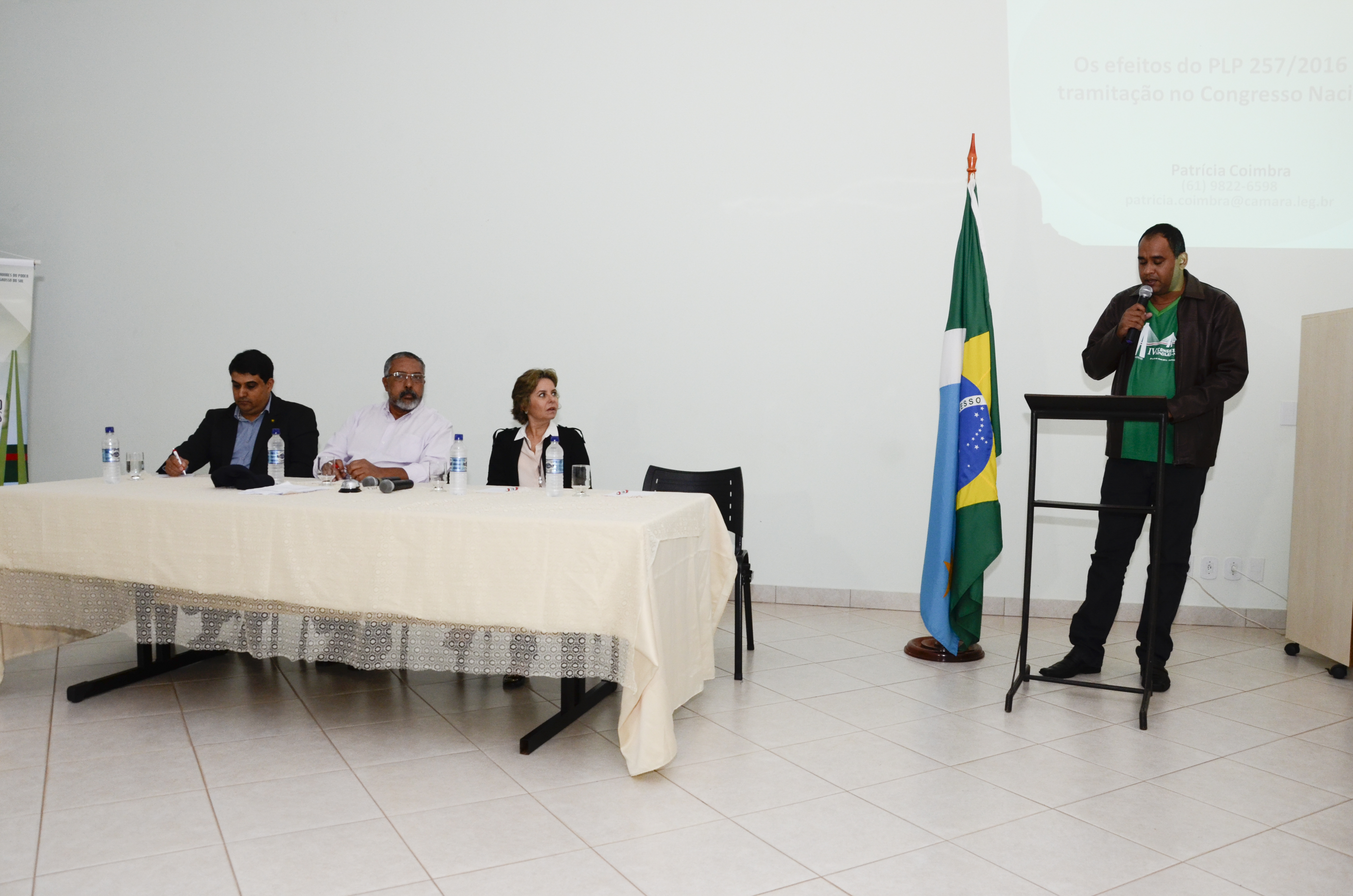 Depois foi a vez da assessora parlamentar Patrícia Coimbra que explanou sobre os efeitos da PLP 257/2016 e a tramitação no Congresso Nacional. O projeto propõe alongamento da dívida pública dos Estados com a União por mais 20 anos, no entanto, se aprovado prejudicará diretamente os direitos dos trabalhadores e administração pública.