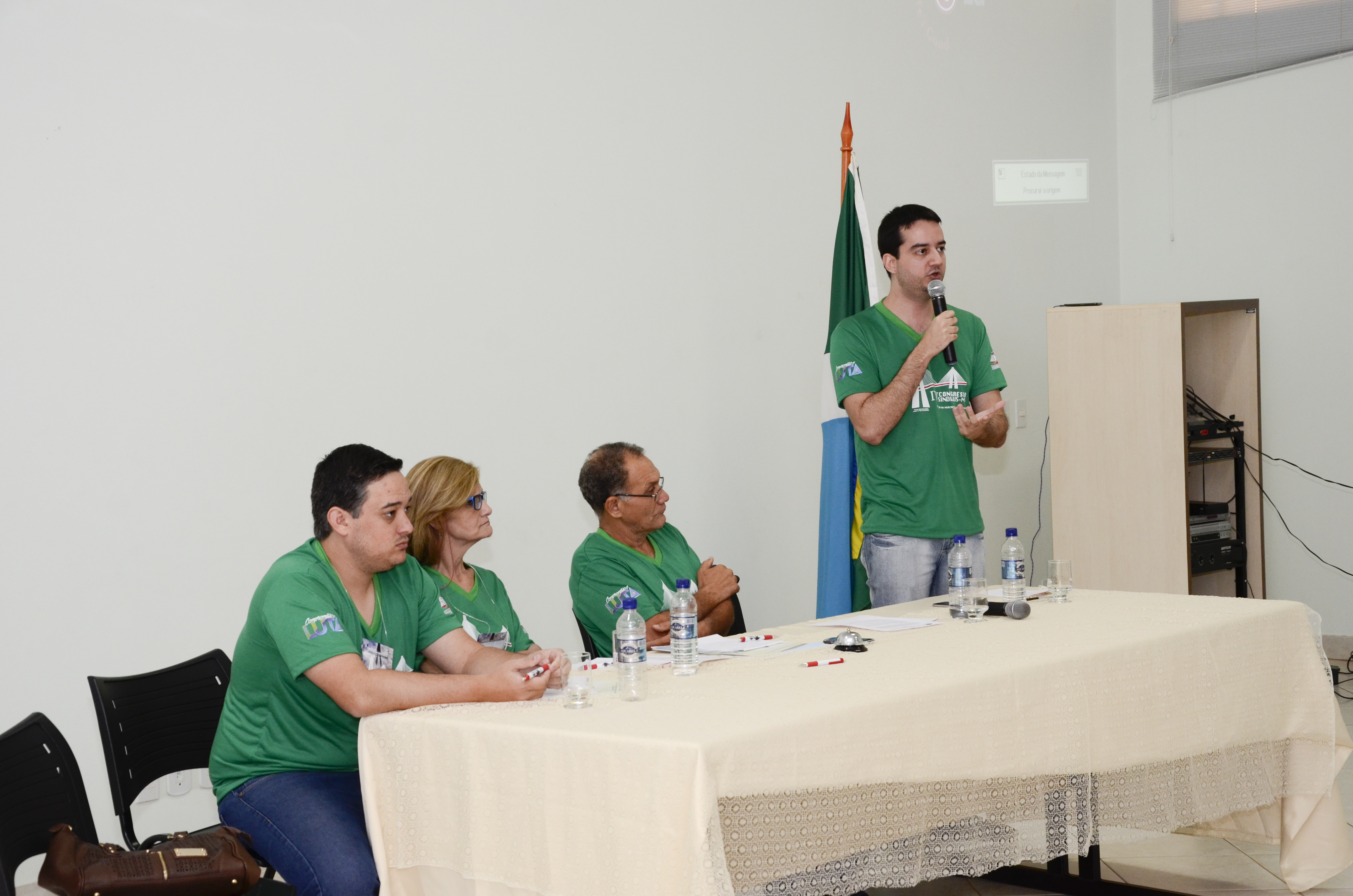 Na sequencia, o superintendente do Ministério do Trabalho e Previdência Social da Regional de MS, advogado Yves Drosghic, iniciou sua palestra sobre a Importância do Sindicato. ”O SINDIJUS está de parabéns por estar fazendo as discussões aqui, pois vêm períodos turbulentos de muita dificuldade política, econômica e trabalhista e o sindicato tem que estar mobilizado pra a luta”, disse Yves.
