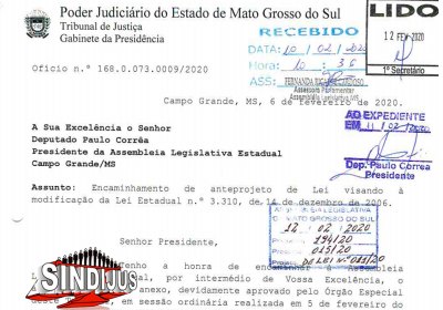 No dia 14 de janeiro, o Sindicato dos Trabalhadores do Poder Judiciário de Mato Grosso do Sul (SINDIJUS-MS) solicitou a concessão do direito por meio de proposição de projeto de Lei Estadual nesse sentido. CLIQUE AQUI para visualizar o documento na íntegra.