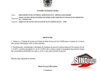CLIQUE AQUI para visualizar o despacho na íntegra ou acesse: http://www.sindijusms.org.br/public/downloads/6270-despacho-cnj-5-dias-0009202-64-2019-2-00-0000-3816586.pdf