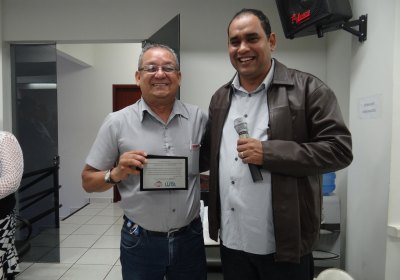 O presidente do Sindijus, Fabiano Reis de Oliveira, fez uma homenagem ao funcionário Humberto Santana pelos 20 anos de trabalho prestados ao sindicato.