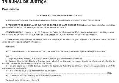 CLICANDO AQUI acesse a portaria publicada: https://www.tjms.jus.br/legislacao/visualizar.php?lei=39999&original=1