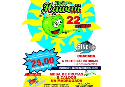 O tradicional BAILE DO HAWAÍ de Campo Grande, será realizado nas dependências da Sede Social do Paque dos Poderes, no próximo dia 22/02, sábado, mesma data em que se realiza a 1ª Reunião do Conselho Geral de nosso Sindicato.