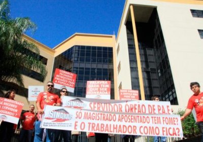 Servidores do Judiciário paralisaram as atividades da maioria das comarcas hoje em Mato Grosso do Sul, fizeram protesto em frente ao Fórum de Campo Grande (foto) e prometem marchar rumo à sede do Tribunal de Justiça. Pelo site do Sindijus, o presidente do sindicato da categoria, Clodoir Vargas, diz que a manifestação visa cobrar do presidente do TJMS, desembargador Joenildo Chaves, promessas que teriam sido feitas no final do ano passado.