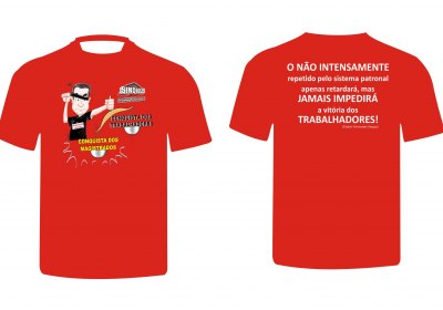 A Diretoria de Divulgação e Imprensa informa que as camisetas para a do dia 03 de julho (quarta-feira) — Paralisação dos Trabalhadores do Poder Judiciário — estão sendo confeccionada e a partir da semana que vem deverão ser entregues aos filiados.