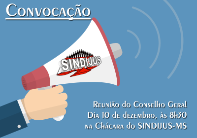 O Presidente do Sindicato dos Trabalhadores do Poder Judiciário de Mato Grosso do Sul (SINDIJUS-MS), Fabiano Reis, e o Presidente do Conselho Geral de Representantes de Representantes, José Balduíno Leite, em conformidade com o Estatuto desta entidade, convocam os Delegados das Delegacias Sindicais para participarem da Reunião Ordinária do Conselho Geral que será realizada no dia 10 (dez) de setembro de 2016 (sábado), às 8h30min, na sede social da entidade, localizada na Rua Carlinda Pereira Contar, Nº 2246, Parque dos Poderes, Campo Grande-MS.