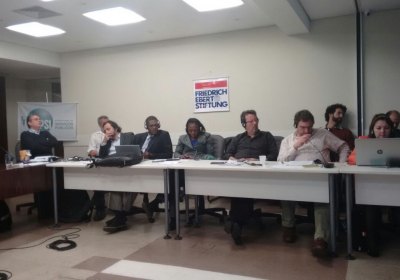 Também participa do debate representando a FENAJUD a diretora secretária de Finanças da Fenajud, Maria José da Silva Santos, conhecida como Zezé. Além da ISP, compareceram integrantes da Fundação Friedrich Ebert Stiftung (FES) e representantes do Caribe, Costa Rica, Panamá, Alemanha, Colômbia, Canadá, Guiana Inglesa, Belize, Uruguai, Argentina, Chile, Nicarágua, México e Brasil — dos Estados de São Paulo, Santa Catarina, Mato Grosso do Sul, Bahia, Rio Grande do Sul, Distrito Federal, Minas Gerais, Paraná e Rio Grande do Norte.