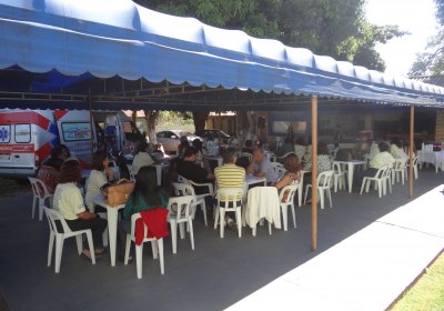 Às 12h30 foi servido o almoço com cardápio especial aos aposentados. Em seguida foram oferecidos sobremesas. Tudo ao som da cantora regional e compositora Ana Cabral. Uma ambulância com equipe especializada ficou as disposição para qualquer emergência, além do atendimento de aferição de pressão e teste de glicemia.