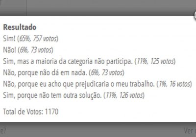 A enquete ainda mostra que 11% votaram em “Sim, porque não tem outra solução” (126 votos), também com 11%, votaram em “Sim, mas a maioria da categoria não participa”. (125 votos).