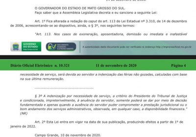 O governador Reinaldo Azambuja sancionou a lei que permite aos servidores do Poder Judiciário venderem as férias, para continuar no trabalho durante este período. A proposta foi apresentada pelo TJMS (Tribunal de Justiça de Mato Grosso do Sul) na Assembleia Legislativa e aprovada, quase 10 meses depois de o CNJ (Conselho Nacional de Justiça) abrir investigação após reportagem do Campo Grande News mostrar compra de férias de um único servidor, apontada como irregular.