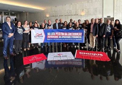 A FENAJUD – Federação Nacional dos Trabalhadores do Judiciário nos Estados e sindicatos afiliados, por meio de seus dirigentes e servidores da base, compareceram à reunião da Frente Parlamentar Mista em Defesa do Aposentado, Pensionista e Idoso, realizada em 22 de maio no salão nobre da Câmara dos Deputados, em Brasília. O ponto alto da atividade foi a entrega oficial do abaixo-assinado com mais de 220 mil assinaturas, que pede a aprovação urgente da PEC Social – que visa pôr fim à cobrança de contribuição previdenciária sobre a remuneração das/os servidoras/es públicas/os aposentadas/os e pensionistas. A coleta de assinaturas foi feita pelo Sindjustiça-RJ, e entregue aos parlamentares presentes no ato pelo coordenador de Assuntos Parlamentares da FENAJUD, Eduardo Couto (CONFIRA AQUI).
