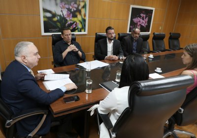 A direção-geral do Sindicato dos Trabalhadores do Poder Judiciário de Mato Grosso do Sul (SINDIJUS-MS) — representada pelo presidente Leonardo Lacerda e o diretor-tesoureiro Fabiano Reis de Oliveira — se reuniu nesta sexta-feira (27/10), com o presidente do TJMS desembargador Sérgio Fernandes Martins e o juiz auxiliar da presidência Dr. Mário José Esbalqueiro Júnior, acompanhados da diretora da Secretaria de Gestão de Pessoas Fabiana Ricartes Oliveira e da Diretora-Geral da Secretaria do Tribunal de Justiça Kele Cristina Leite de Melo a fim se tratar de mais uma fase da negociação salarial de 2023 e iniciar os preparativos para a fase seguinte.