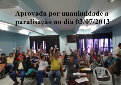 Na Reunião Extraordinária do Conselho Geral foi aprovada por unanimidade a paralisação no dia 03/07/2013 e reunião do Conselho Geral para o dia 29/06/2013, discutindo-se o avanço das negociações ocorrido até o dia 28/06/2013 pleiteados pela categoria.