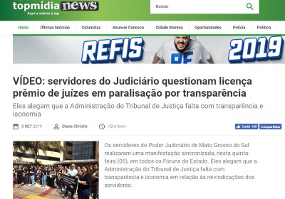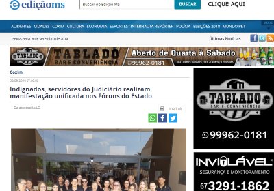 MIDIAMAX - Servidores do TJMS paralisam atividades nesta quinta-feira - https://www.midiamax.com.br/cotidiano/2019/por-falta-de-transparencia-servidores-do-tjms-paralisam-atividades-nesta-quinta-feira