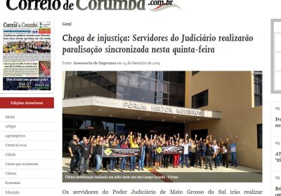 CORREIO DE CORUMBÁ - Chega de injustiça: Servidores do Judiciário realizarão paralisação sincronizada nesta quinta-feira - http://www.correiodecorumba.com.br/?s=noticia&id=34159