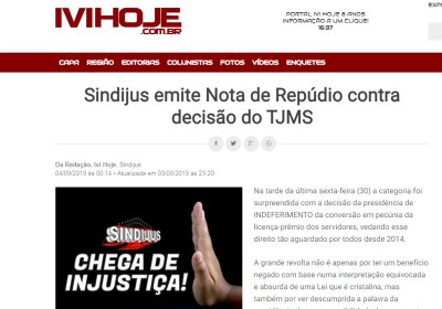 IVINHEMA - Sindijus emite Nota de Repúdio contra decisão do TJMS - https://www.ivihoje.com.br/noticias/editorias/regiao/sindijus-emite-nota-de-repudio-contra-decisao-do-tjms