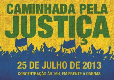 A manifestação Caminhada pela Justiça, promovida pela Ordem dos Advogados do Brasil, Seccional Mato Grosso do Sul (OAB/MS), será realizada nesta quinta-feira (25), concentração às 14h, em frente à OAB-MS, Avenida Mato Grosso, 4700. Entre as bandeiras são contra a morosidade na Justiça, transparências nos gastos públicos e contra o fechamento das Comarcas. A direção do SINDIJUS-MS irá participar da caminhada e pede para que os trabalhadores, que puderem, participem do movimento. Mais informações (67) 3382-5051.