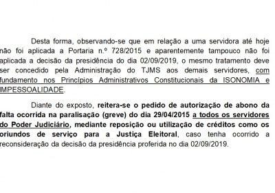 SINDIJUS-MS pede reconsideração de decisão que negou abono da Paralisação de 2015