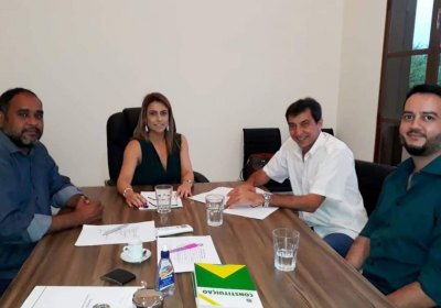 O presidente do Sindicato dos Trabalhadores do Poder Judiciário de Mato Grosso do Sul (SINDIJUS-MS), Leonardo Lacerda, e o coordenador de Assuntos Parlamentares da Federação Nacional dos Trabalhadores do Judiciário nos Estados (FENAJUD), Fabiano Reis (vice-presidente do SINDIJUS-MS), se reuniram na tarde desta segunda-feira (23), com a senadora sul-mato-grossense, Soraya Thronicke, contando também com a participação do filiado Renato Karim Safatli.