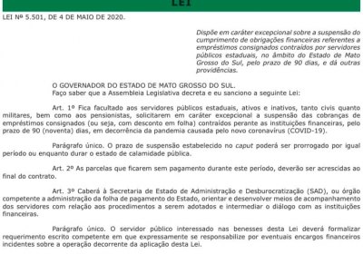 O Sindicato dos Trabalhadores do Poder Judiciário de MS – SINDIJUS-MS, protocolou hoje (06/05) pedido ao TJMS para que tome providências urgentes junto ao Banco Bradesco e demais entidades bancárias conveniadas com a folha de pagamento e seja disponibilizada a opção de suspensão da cobrança de consignados com prorrogação das parcelas, com informação prévia de eventuais cobranças extras, mediante condições mais favoráveis diante das circunstâncias excepcionais decorrentes da pandemia do Coronavirus, com fundamento na LEI ESTADUAL N.º 5.501/2020, tendo como exemplo os atos praticados pelo Poder Executivo do nosso Estado, bem como pelo TJPR.