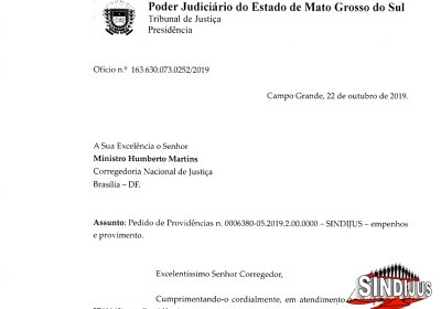 Após determinação do Conselho Nacional de Justiça (CNJ), o Tribunal de Justiça de Mato Grosso do Sul (TJMS) apresentou informações sobre as alegações contidas no Pedido de Providências do Sindicato dos Trabalhadores do Poder Judiciário de Mato Grosso do Sul (SINDIJUS-MS), de forma parcial, no último dia do prazo, 22 de outubro.